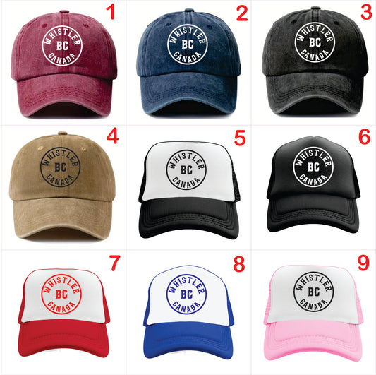 Whistler BC Canada Hat - Trucker Hat & Vintage Washed Baseball Cap