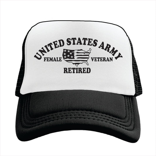 United States Army Female Veteran Retired Trucker Hat Cap